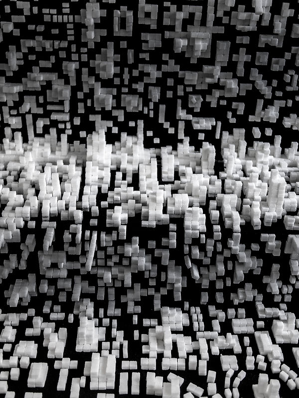 Zuckerstadt (getrocknete Erde), Würfelzucker, Installation, 300 x 400 cm, Fabrik 45, 2014